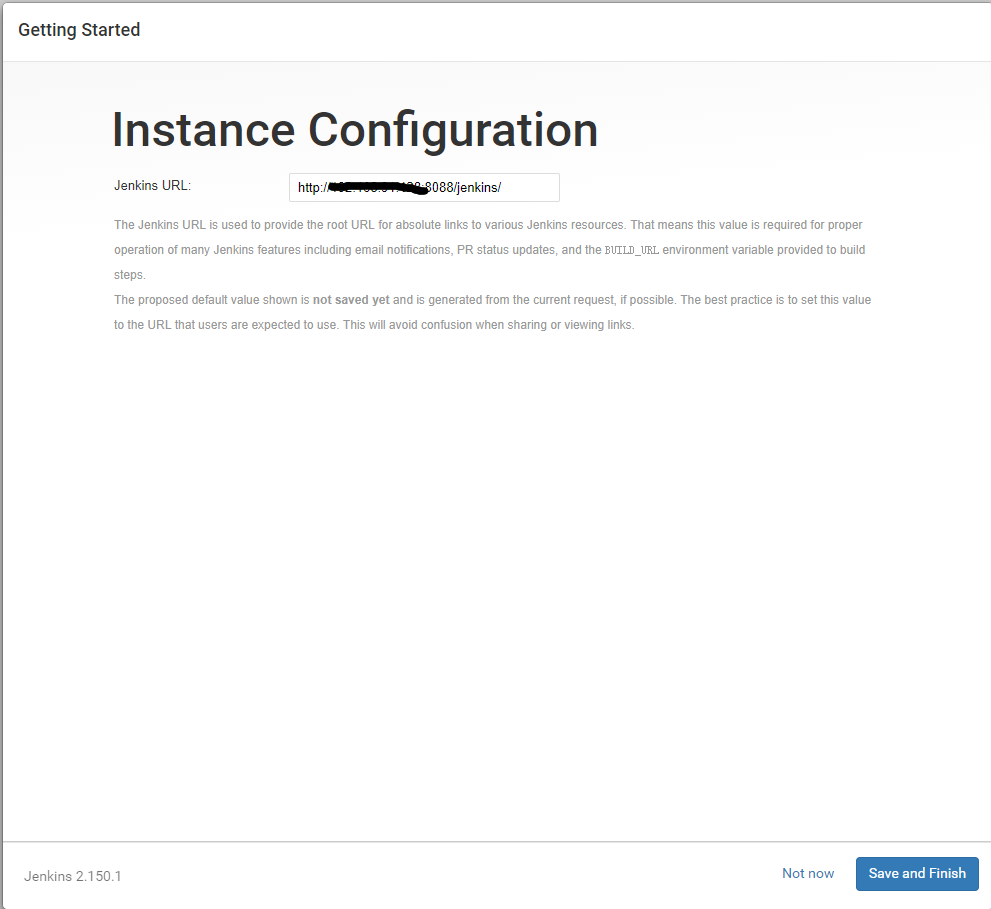 Jenkins URL用于为指向各种Jenkins资源的绝对链接提供根URL。这意味着,要正确操作Jenkins的许多特性(包括电子邮件通知、PR状态更新和为构建步骤提供的BUILD_URL环境变量),需要这个值。建议显示的默认值还没有保存,如果可能的话,是由当前请求生成的。最佳实践是将此值设置为用户期望使用的URL。这将避免在共享或查看链接时产生混淆。我这里设置的是根据该服务气的IP地址进行的设置。