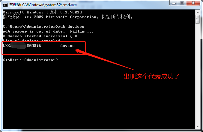 验证是否成功:打开cmd--输入命令【adb devices】