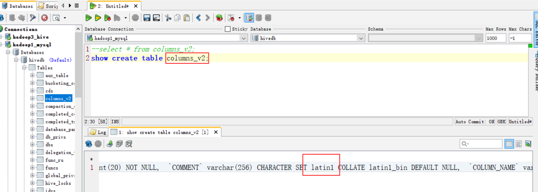 因为我们知道 metastore 支持数据库级别,表级别的字符集是 latin1