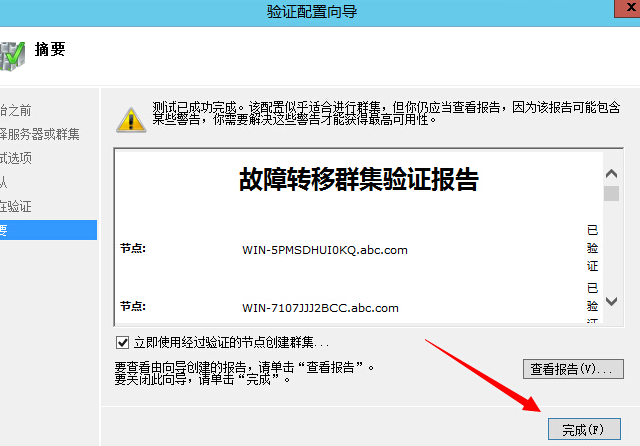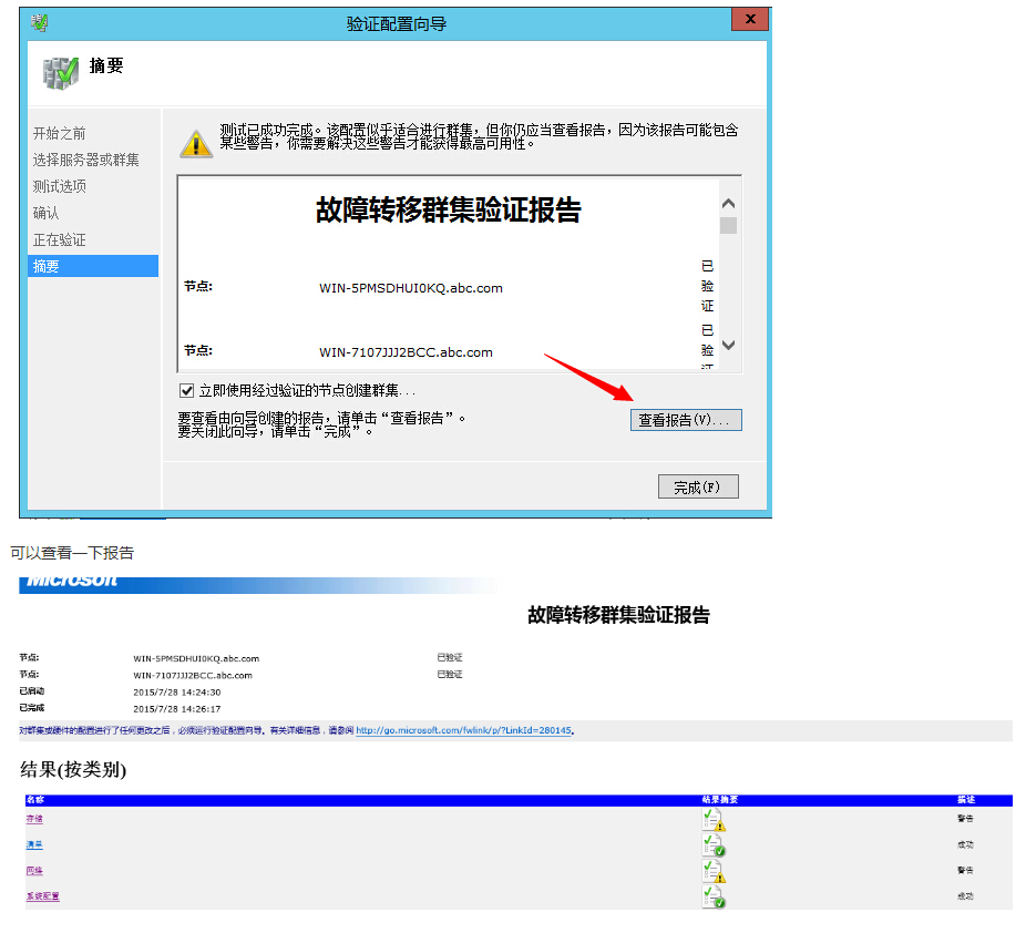 报告里面一定不能出现失败,否则你需要检查是什么问题导致失败,失败是建立不了故障转移集群的