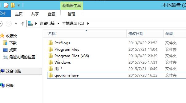 11、在域控上的C盘新建一个quorumshare文件夹作为共享文件夹