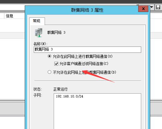 允许在此网络上进行群集网络通信 and 允许客户端通过该网络连接