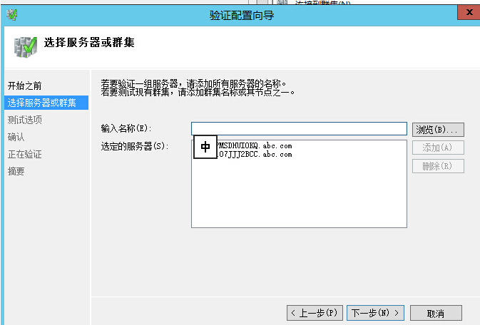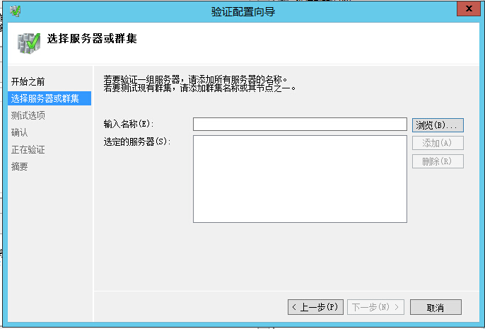 4、在“选择服务器或群集”界面中,单击“浏览”按钮将所有要加入群集的服务器添加进来,然后单击“下一步”按钮。