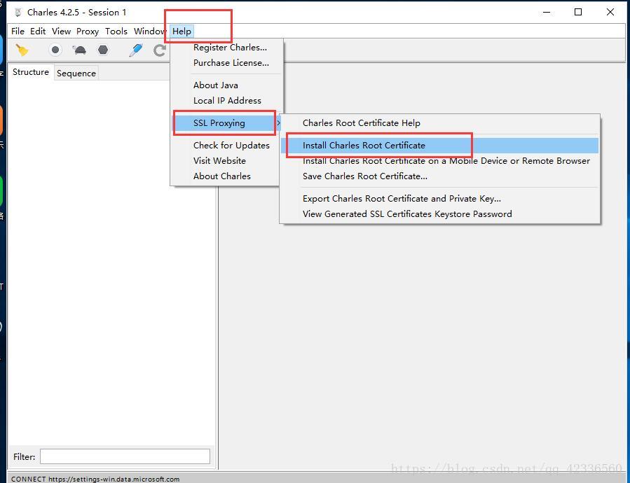 点击 Help -> SSL Proxying -> Install Charles Root Certificate on a Mobile Device