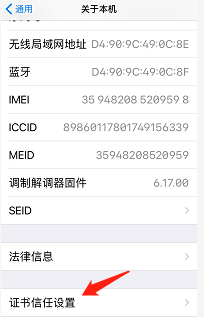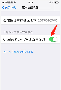 IOS手机安装好证书之后要到:设置-通用-关于本机中进行证书信任设置: