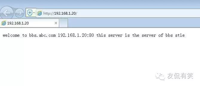 [root@Centos extra]# echo '192.168.1.20:80 this server is the server of bbs stie'>>/data/www/bbs/index.html