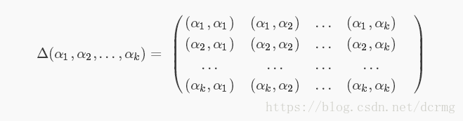 n维欧式空间中任意k个向量之间两两的内积所组成的矩阵,称为这k个向量的格拉姆矩阵(Gram matrix)