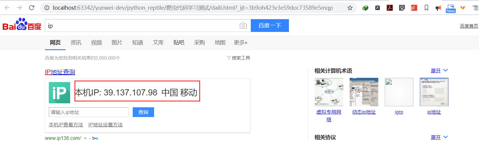 url = 'http://www.baidu.com/s?ie=UTF-8&wd=ip'