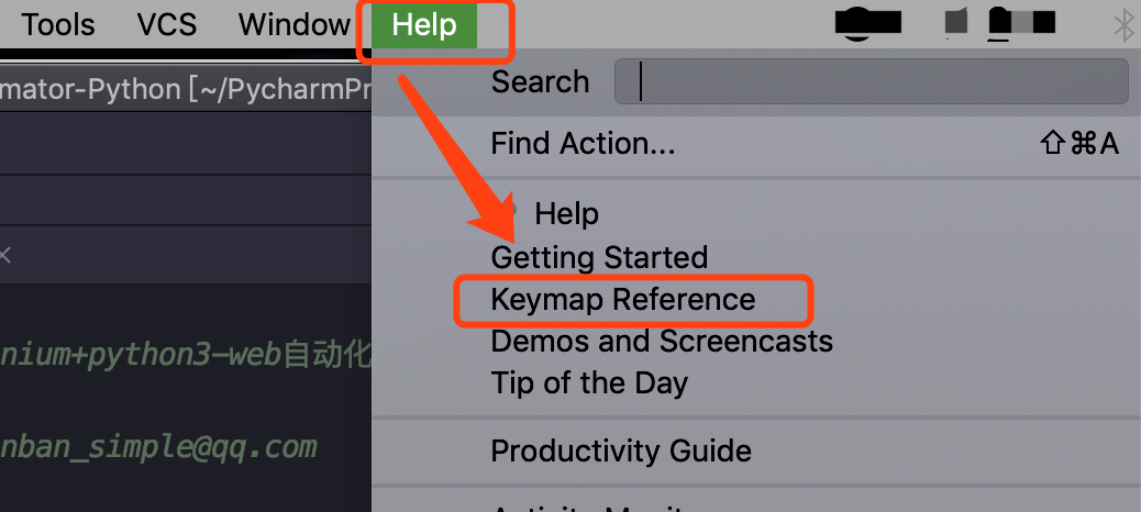 更多的快捷键使用可在网上搜索。也可以在pycharm的快捷键说明中查找: