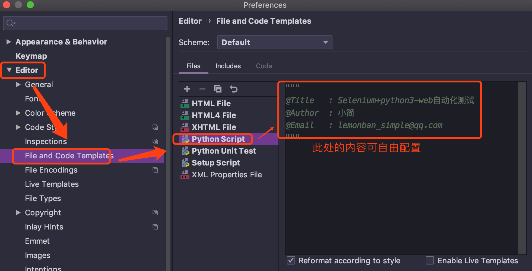 在pycharm当中创建某些文件时,可以设置模板。