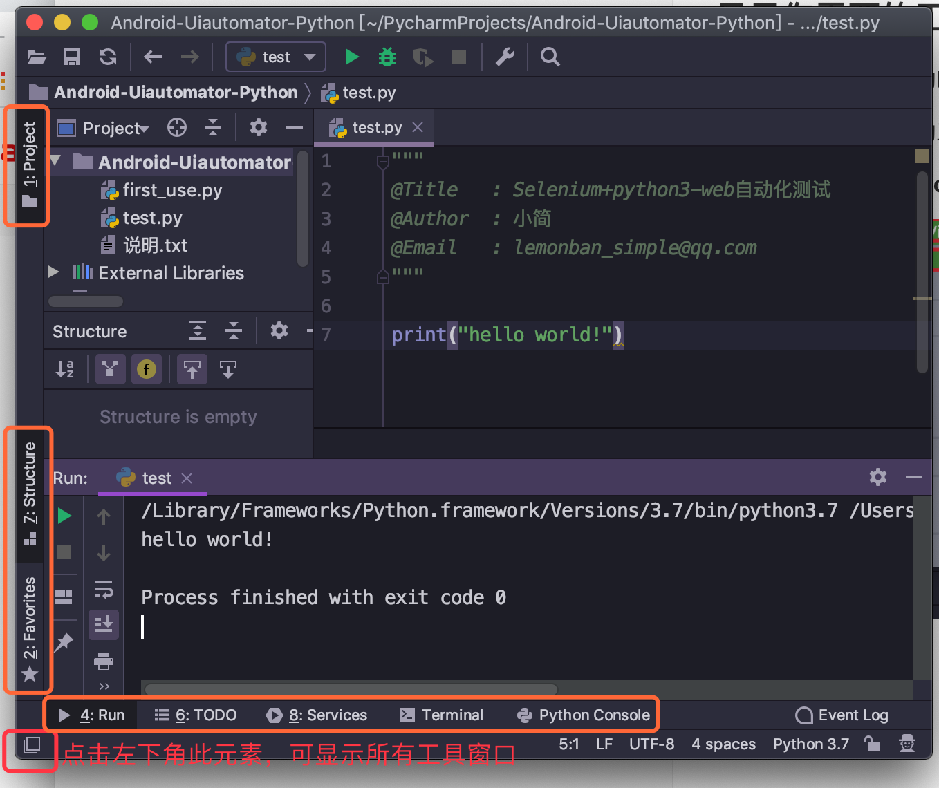 点击下图中,左下角的元素,可显示所有工具窗口。