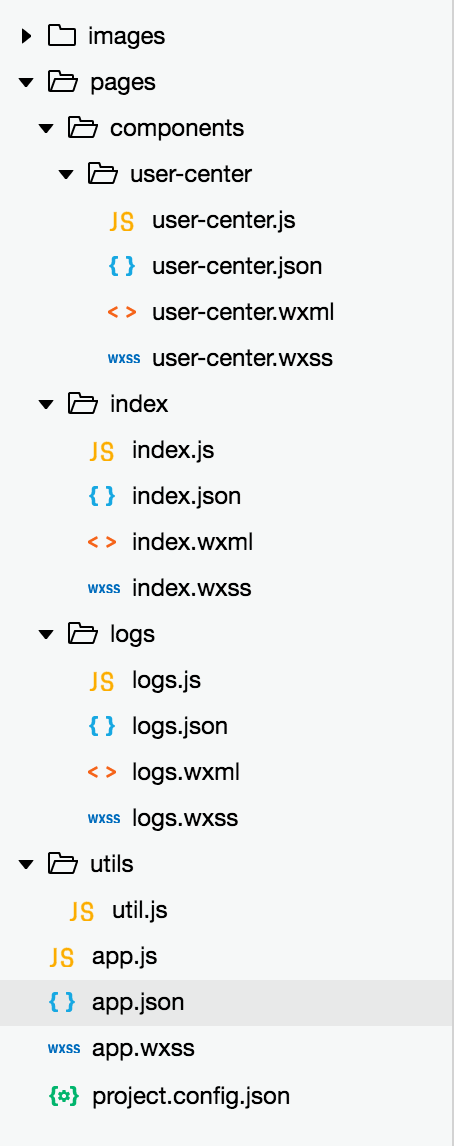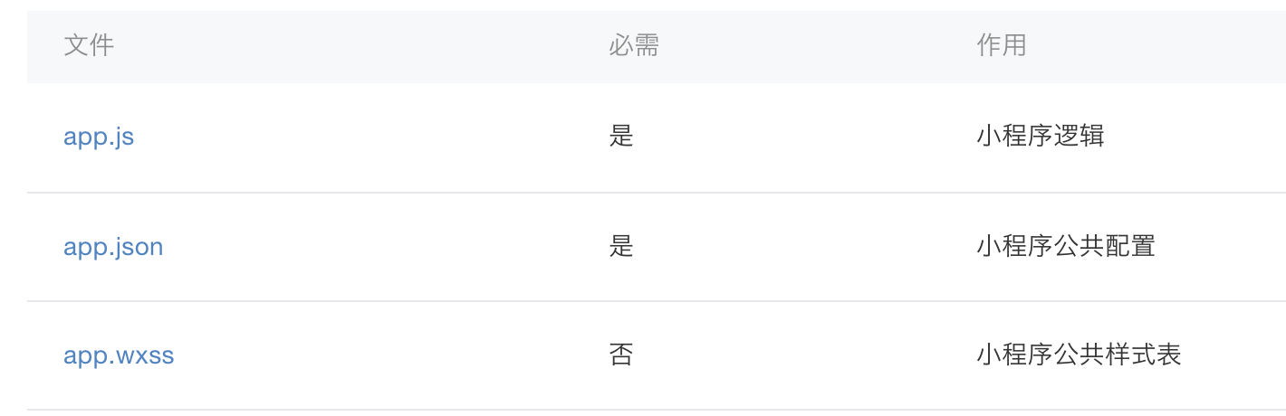 一个小程序主体部分由三个文件组成,必须放在项目的根目录,如下: