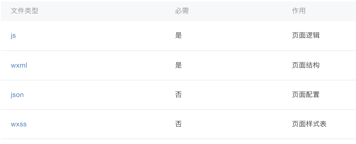 注意:为了方便开发者减少配置项,描述页面的四个文件必须具有相同的路径与文件名。