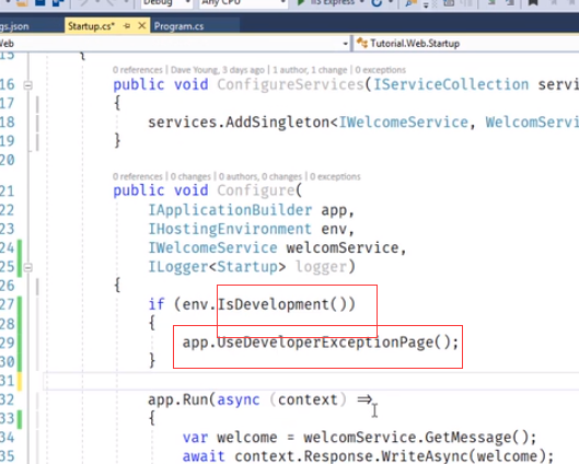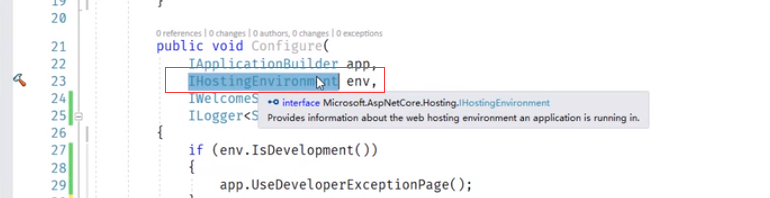 通过IHostingEnvironment来获取到底应用于那个环境里,这里这个环境通常是指开发环境或者是生产环境,或者测试环境