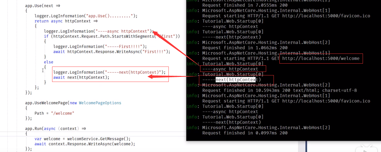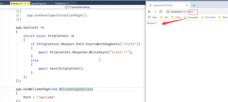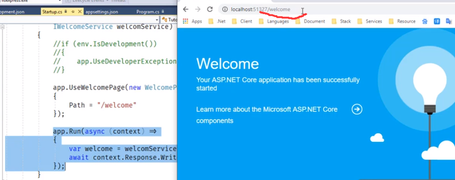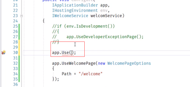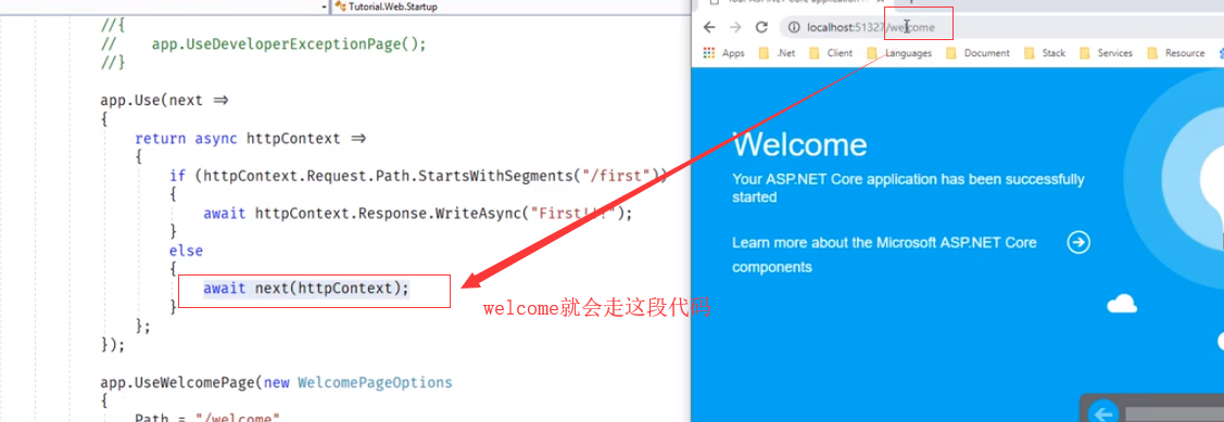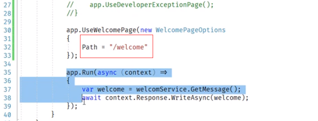 直接在方法里面写中间件,比直接UseWelcomePage更底层一些