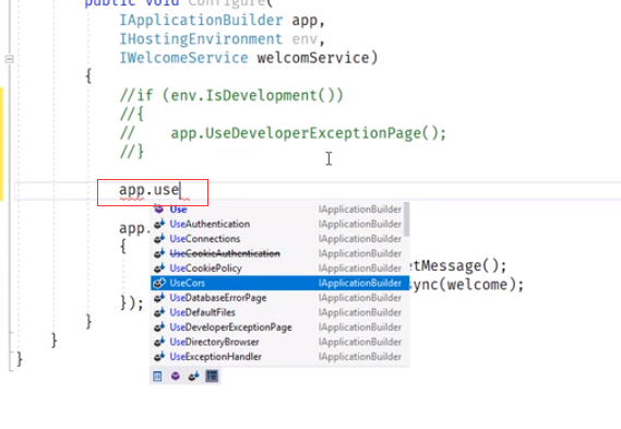 useCors是跨域的,use开头的方法把中间件都封装了另外一个方法或者另外一个类里面了