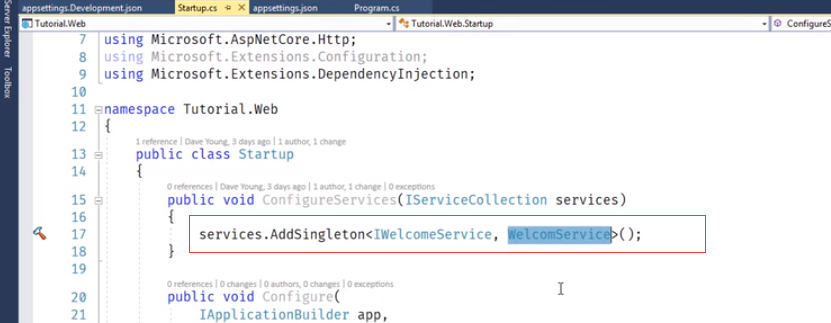 并调用startup类里面的两个方法ConfigureServices和Configure