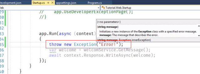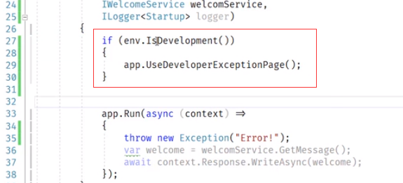 UseDeveloperExceptionPage放在位置比较靠前的位置,开发者异常页面只适合给开发者看,客户不适合看