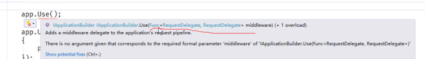 他的参数是一个Func,Func本身的参数类型就是RequestDelegate,Func返回的类型也是RequestDelegate