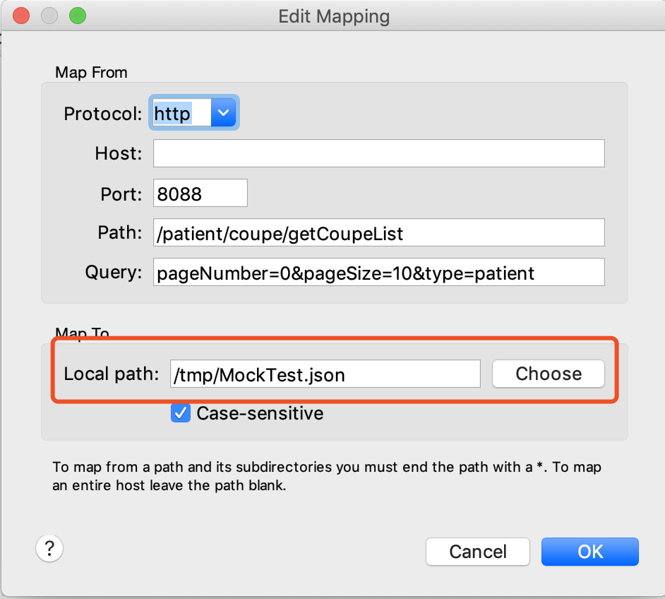 Map Local可以对指定的接口返回使用本地文件进行替换,如这里替换为上文中废话半天生成的数据文件MockTest.json: