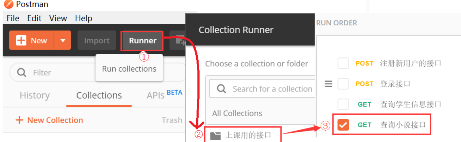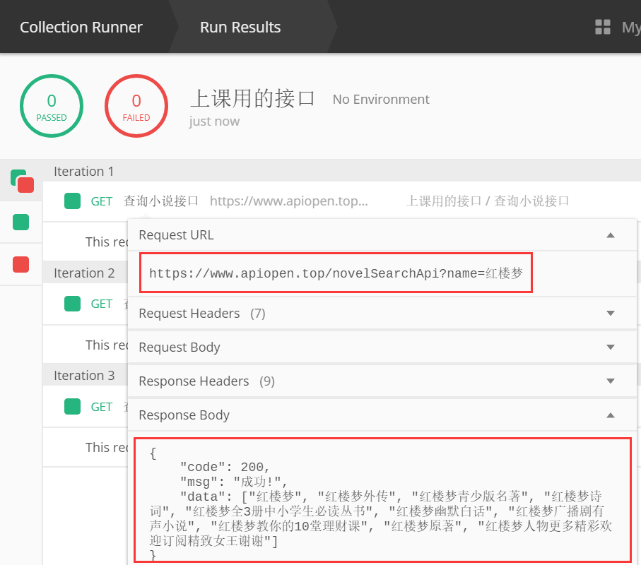 点击Runner---->上课用的接口--->查询小说接口
