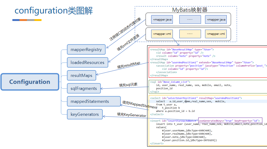 映射器关键类 Configuration : Mybatis启动初始化的核心就是将所有xml配置文件信息加载到Configuration对象中, Configuration是单例的,生命周期是应用级的;