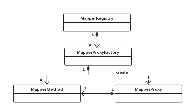 MapperRegistry:mapper接口动态代理工厂类的注册中心。在MyBatis中,通过mapperProxy实现InvocationHandler接口,MapperProxyFactory用于生成动态代理的实例对象;
