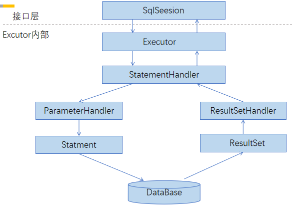 Executor的三个重要火枪手: StatementHandler:它的作用是使用数据库的Statement或PrepareStatement执行操作,启承上启下作用; ParameterHandler:对预编译的SQL语句进行参数设置,SQL语句中的的占位符“?”都对应BoundSql.parameterMappings集合中的一个元素,在该对象中记录了对应的参数名称以及该参数的相关属性 ResultSetHandler:对数据库返回的结果集(ResultSet)进行封装,返回用户指定的实体类型;