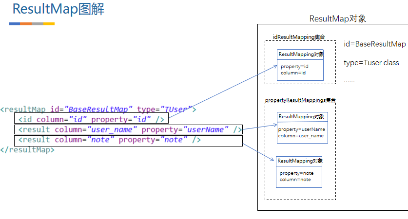 ResultMap:用于解析mapper.xml文件中的resultMap节点,使用ResultMapping来封装id,result等子元素;