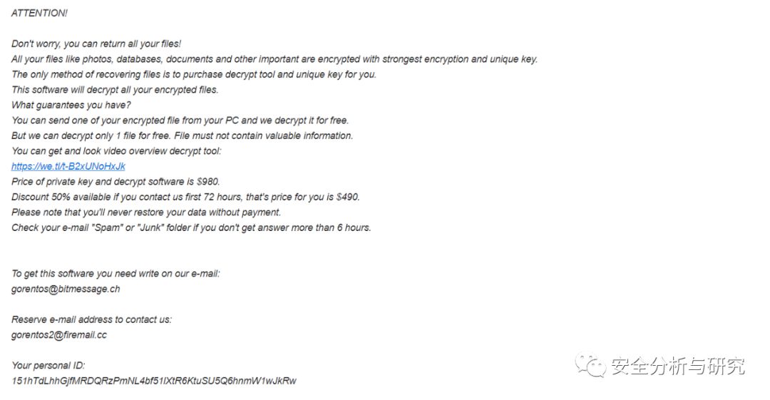 新的变种加密后缀名为HorseLiker,勒索提示信息,内容如下所示: