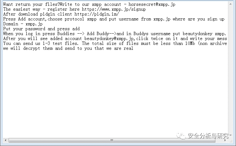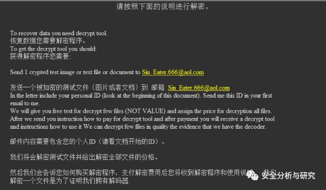 勒索提示信息,如下所示: