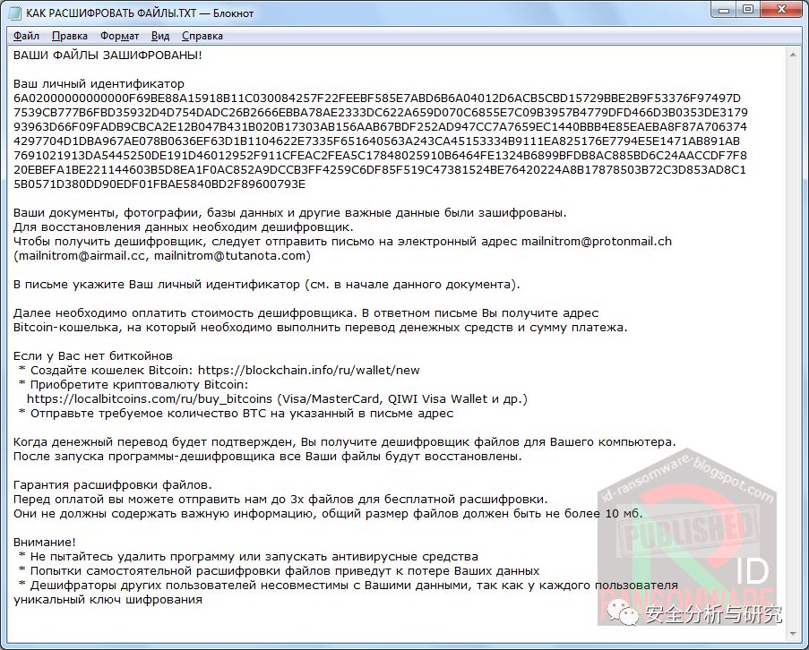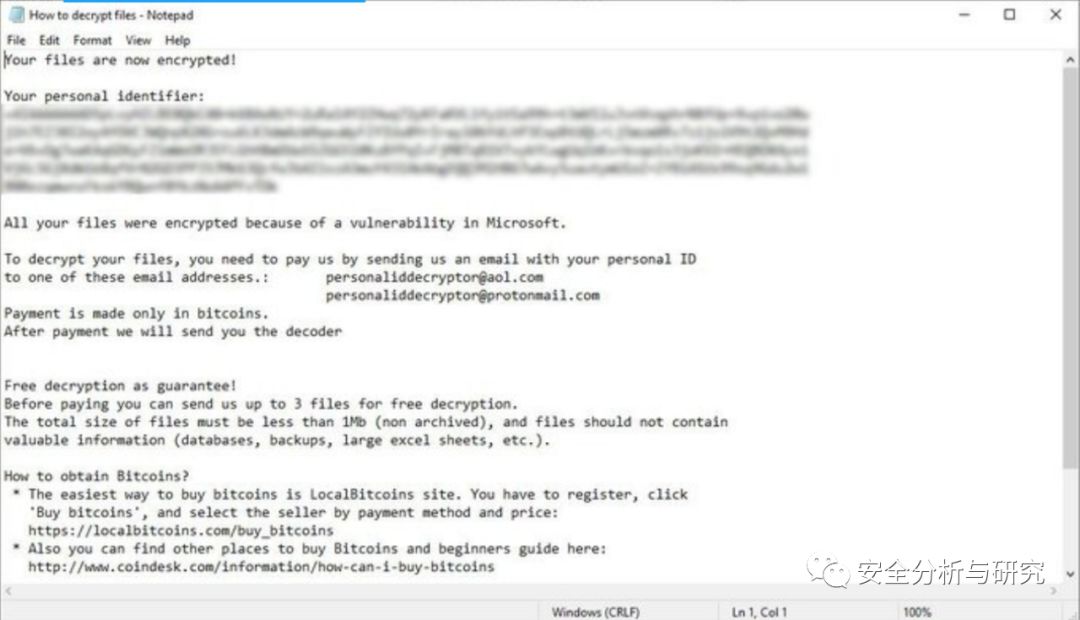 此勒索病毒的BTC钱包地址: