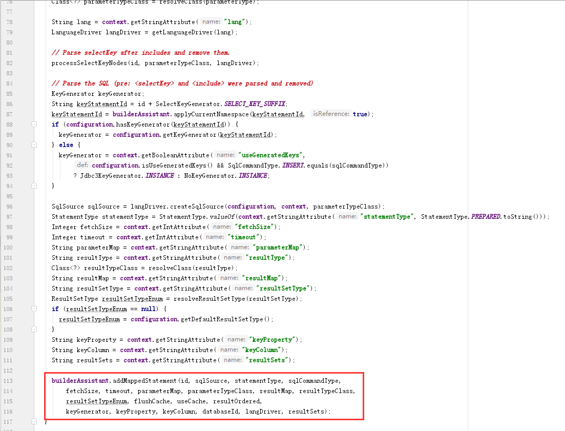 parseStatementNode方法并不复杂,都是在读取context的数据,主要是最后圈出来的代码,和上一篇解析MapperAnnotationBuilder类最后调用的是同一方法。
