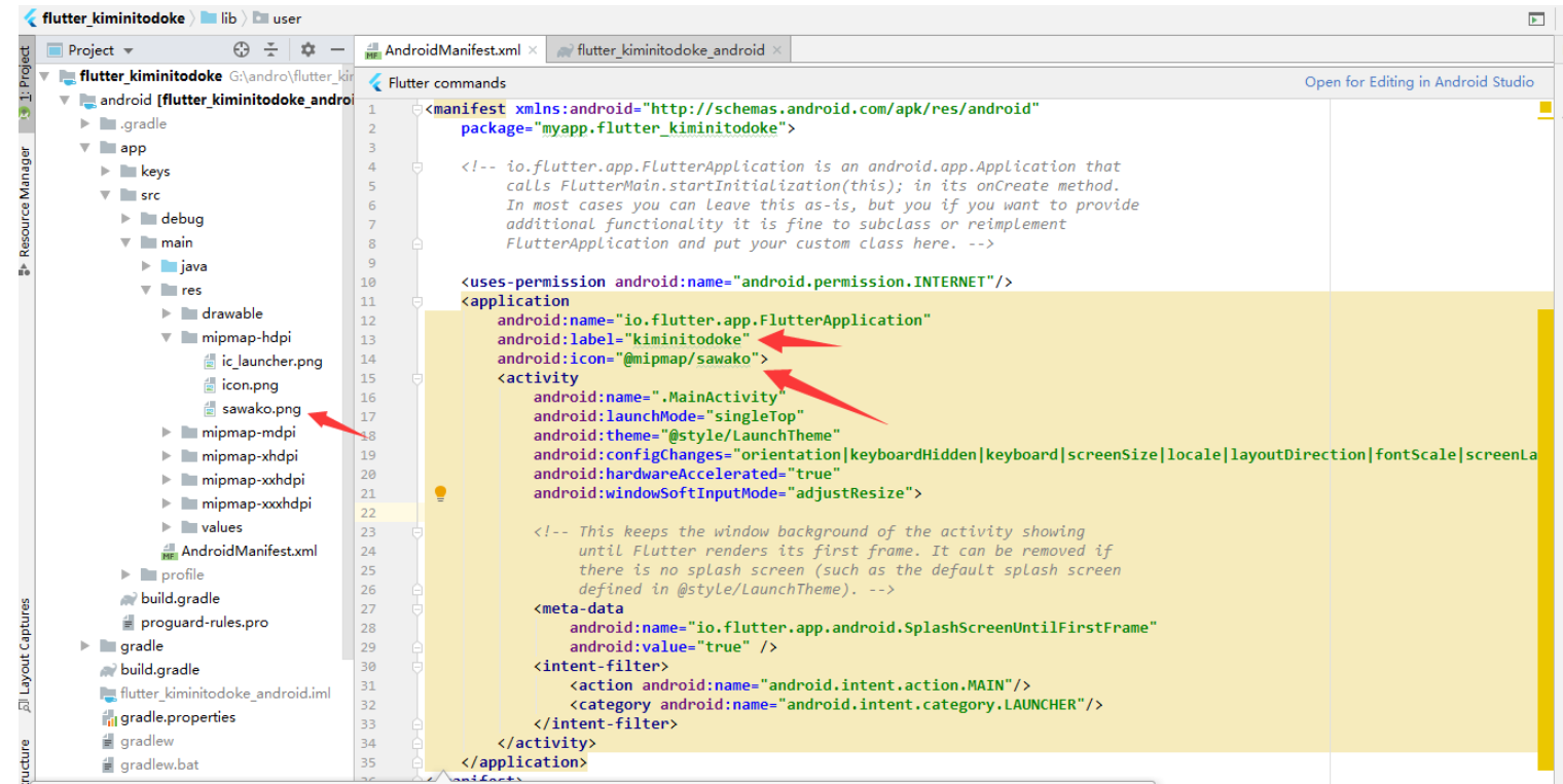 路径:<app dir> /android/app/src/main/AndroidManifest.xml