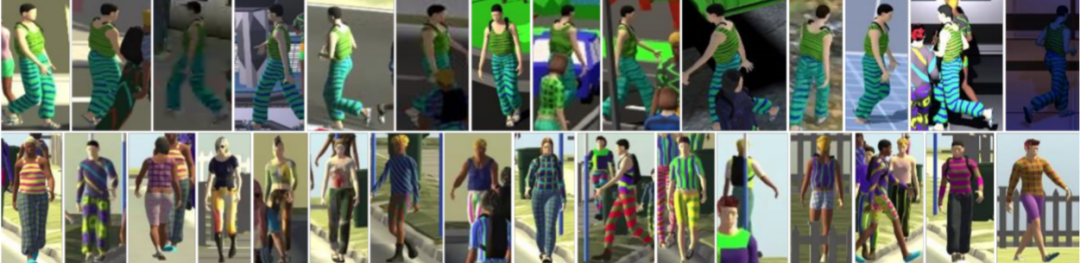 另一方面,为了解决数据问题,研究人员开始探索通过游戏引擎产生虚拟数据以辅助行人再辨识,例如SOMAset,SyRI,和PersonX。然而,这些方法主要采用的是公开获取的或手工制作的三维人物模型,因此其人物数量很难增长到一定的量级。