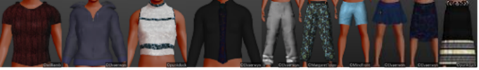 我们采用了MakeHuman来制作三维人物,该软件的用户社区资源中包含多种衣服模型,包括外套、上衣、裤子等,如图2所示。