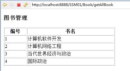 运行服务器,在浏览器访问:http://localhost:8888/SSM01/Book/getAllBook