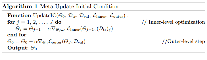 Fig. 1: Left: Exact meta-learning of initial condition with inner loop training DA to convergence is intractable. Right: Online meta-learning alternates between meta-optimization and domain adaptation.