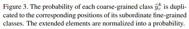 Figure 2. Progressive Adversarial Networks (PAN). A shared feature extractor G and K label predictors C k |k = 1, ..., K together form the coarse-grained CNN (top) for coarse-grained recognition. Similarly, the fine-grained CNN (bottom) contains a feature extractor F and a label predictor Y . Progressive Granularity Learning (PGL, red): the fine-grained ground-truth label yf and the coarse-grained predicted distributions ybc are mixed by ratio ε following a well-established schedule [12] for curriculum learning. We combine the coarse-grained and fine-grained labels into progressive labels via class subordination in label hierarchy (details in Figure 3). Progressive Adversarial Learning (PAL, green): the coarse-to-fine classifier predictions (supervised by progressive labels) are combined with the feature representations by inner product and residual connection, and fed into a domain discriminator D. GRL is the gradient reversal layer [12].