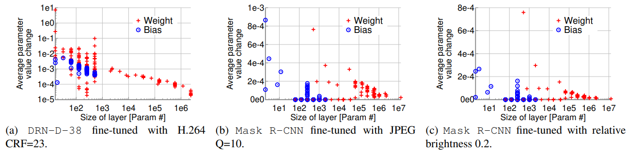 Figure 5: Per-layer average weight value change caused by fine-tuning.