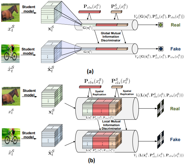 Figure 3. Framework of (a) global mutual information estimation and (b) local mutual information estimation in our SE-C