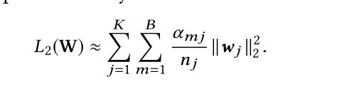 3.对于出现频率低的,给予较大的正则化强度。),因为如果使用全特征参数的话,会增大计算量,丢弃的话就会过拟合。公式如下(文中还做了一个近似的操作,如公式2,文中那个λ是个需要手动调节的超参数,不用管):