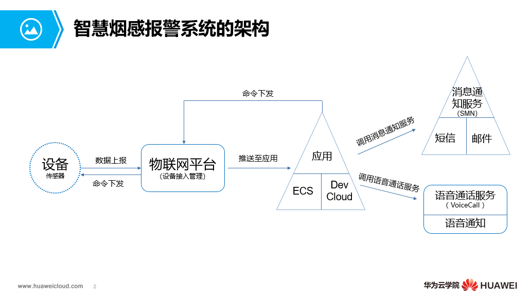 华为云微认证《物联网智慧烟感报警系统》,是面向物联网、消防行业相关的开发工程师,以及社会大众,高校师生,利用物联网、设备接入服务和消息通知服务,实现烟感报警器邮件、短信、语音多渠道报警,帮助学员通过了解物联网、SMN、ECS、DevCloud开发平台,掌握应用构建方法,从而了解多个云服务概念,通过微认证详尽的实验操作指导,来进行智慧烟感报警系统实践,从而提升物联网和应用开发能力。
