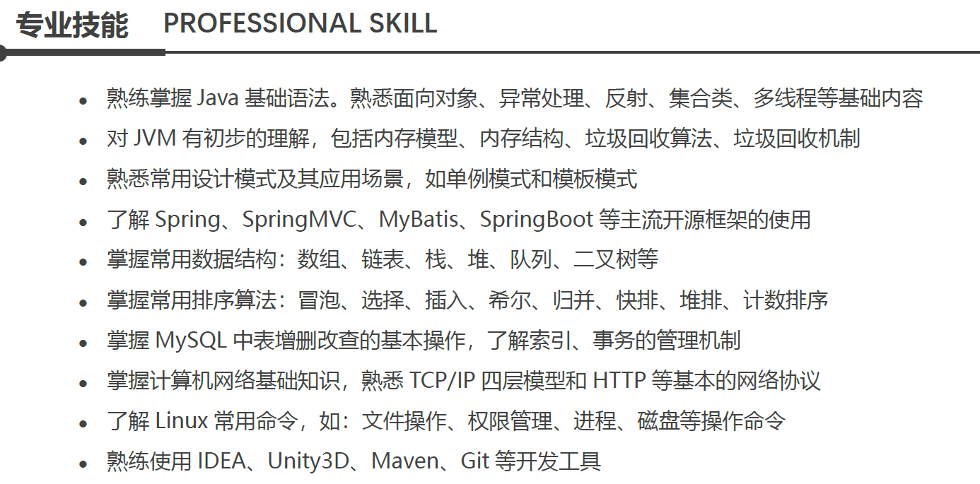 经常删删改改,一句话可能要思考好久;我把我掌握的知识点都很详细的列出来,虽然技能列表看起来很基础,但是我有自信对自己写的内容负责