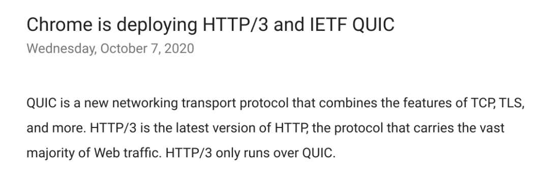 Chromium 官方宣布 Chrome 正在部署到 HTTP/3 与 IETF QUIC。