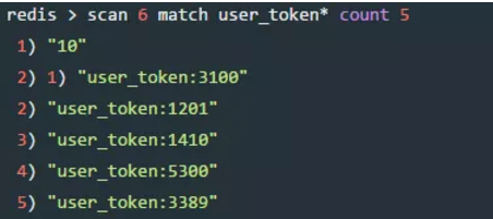 cousor 是游标,MATCH 则支持正则匹配,我们正好可以利用此功能,比如匹配 前缀为"dba_"的key, COUNT 是每次获取多少个key。