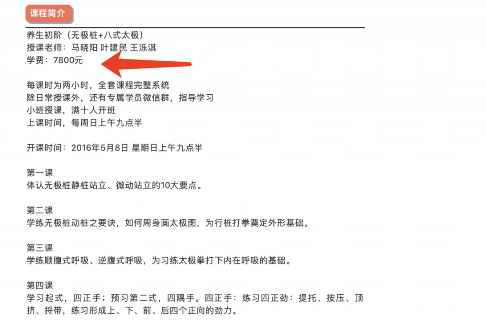 网上爆料浑元太极拳有个英国网站,上面显示马老师在英国授拳的学费是一天