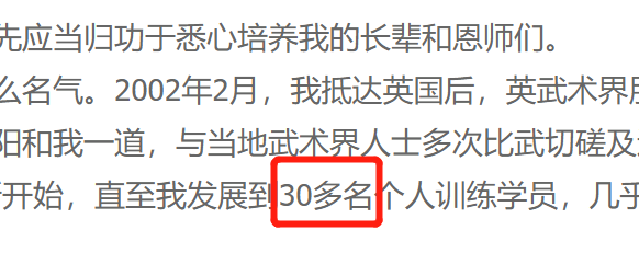 徒弟都能收费这么高,想必马老师只会多不会少,马老师在英国巅峰时期发展到30多名学员, 假设每周给30名学员上2天课,一年收入就是 30*70镑*4周*12个月=10万英镑,按当时汇率折合人民币是