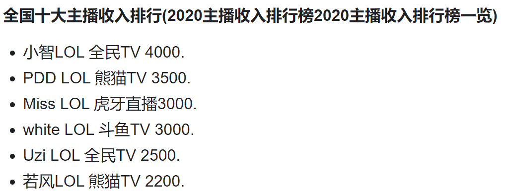 谷歌搜索的主播收入排行榜