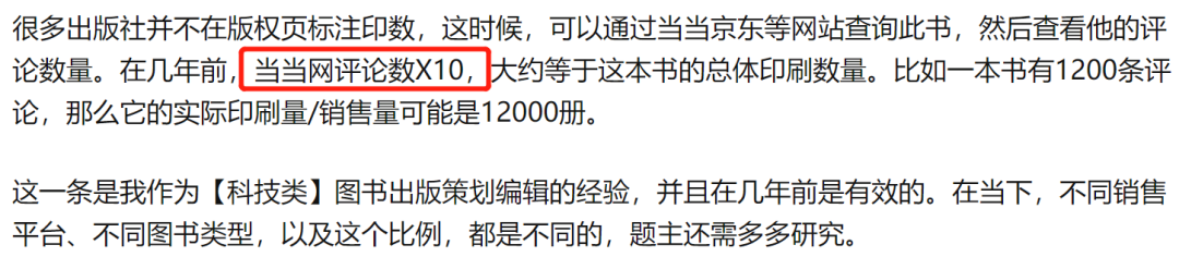 根据知乎教的办法,当当网评论数*10=这本书的销量。